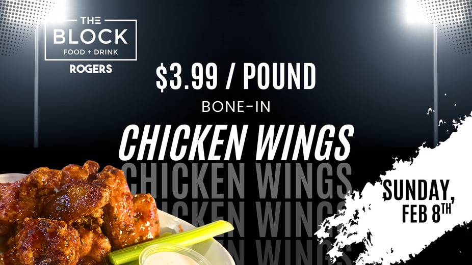 Celebrate Super Bowl Sunday with our bone-in wing special. 1lb for just $3.99! Valid all day, dine-in only.